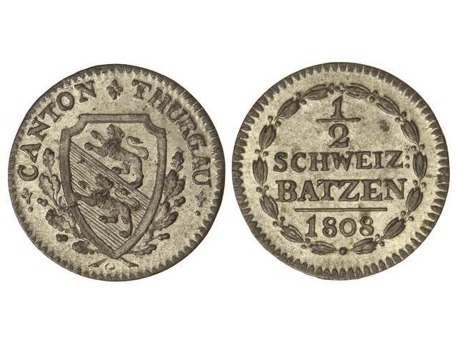 1/2 Batzen. 1808. THURGAU. Ve. KM-3. EBC.