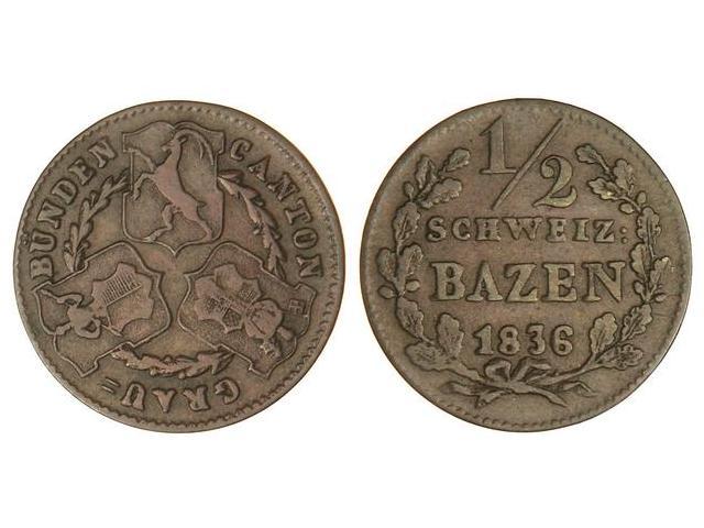 1/2 Batzen. 1836-A.B. GRAUBUNDEN. Ve. KM.13. MBC-.