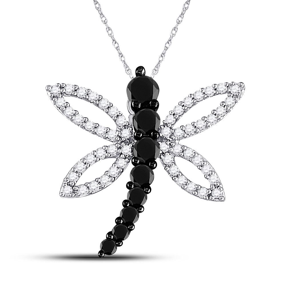 10k White Gold Black Color Enhanced Diamond Womens Dragonfly Insect Bug Flying Pendant 1/2 Cttw