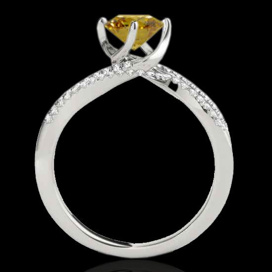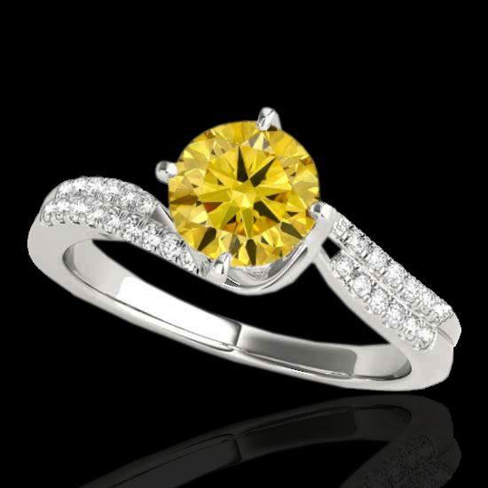 REF-161N8Y -35112 ---- 1.2 CTW Certified Si Fancy Yellow Diamond Bypass Solitaire Ring 10K White Gold ---- Luxury Designer Brand Ring Appraised at $10,700 Certificate Number US35112 10k White gold, Ring Size is 7, Ring measuring approx. Uniform, weighing in total approx. 4.3 grams. Made in the USA and is stamped 10k, Main stone 1 carat total weight containing 1 pieces of Intense Fancy Yellow color with SI quality Round shape cut Diamond , Stone #2 0.2 carat total weight containing 32 pieces of H-I color with VS/SI quality Round shape cut Diamond