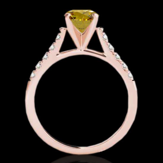 REF-145K3W -34978 ---- 1.2 CTW Certified Si/I Fancy Intense Yellow Diamond Solitaire Ring 10K Rose Gold ---- Luxury Designer Brand Ring Appraised at $9,600 Certificate Number US34978 10k Rose gold, Ring Size is 7, Ring measuring approx. Uniform, weighing in total approx. 3.5 grams. Made in the USA and is stamped 10k, Main stone 1 carat total weight containing 1 pieces of Intense Fancy Yellow color with SI quality Round shape cut Diamond , Stone #2 0.2 carat total weight containing 10 pieces of H-I color with VS/SI quality Round shape cut Diamond