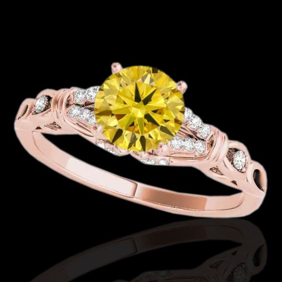 REF-209W3F -35258 ---- 1.2 CTW Certified Si/I Fancy Intense Yellow Diamond Solitaire Ring 10K Rose Gold ---- Luxury Designer Brand Ring Appraised at $13,800 Certificate Number US35258 10k Rose gold, Ring Size is 7, Ring measuring approx. Uniform, weighing in total approx. 3.3 grams. Made in the USA and is stamped 10k, Main stone 1 carat total weight containing 1 pieces of Intense Fancy Yellow color with SI quality Round shape cut Diamond , Stone #2 0.2 carat total weight containing 26 pieces of H-I color with VS/SI quality Round shape cut Diamond