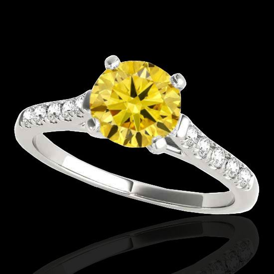 REF-145M3H -34977 ---- 1.2 CTW Certified Si/I Fancy Intense Yellow Diamond Solitaire Ring 10K White Gold ---- Luxury Designer Brand Ring Appraised at $9,600 Certificate Number US34977 10k White gold, Ring Size is 7, Ring measuring approx. Uniform, weighing in total approx. 3.5 grams. Made in the USA and is stamped 10k, Main stone 1 carat total weight containing 1 pieces of Intense Fancy Yellow color with SI quality Round shape cut Diamond , Stone #2 0.2 carat total weight containing 10 pieces of H-I color with VS/SI quality Round shape cut Diamond