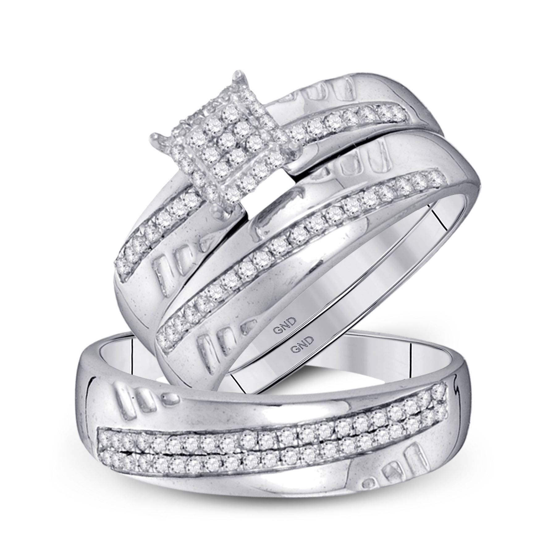 10kt White Gold His & Hers Round Diamond Cluster Matching Bridal Wedding Ring Band Set 1/2 Cttw