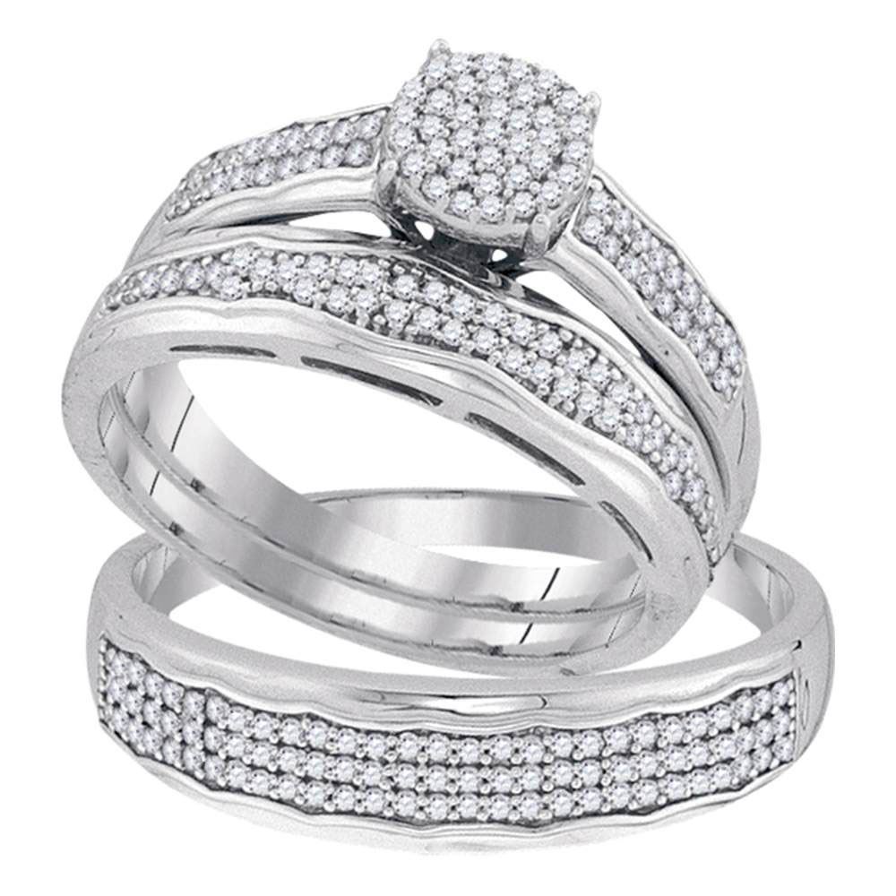 10kt White Gold His & Hers Round Diamond Cluster Matching Bridal Wedding Ring Band Set 1/2 Cttw