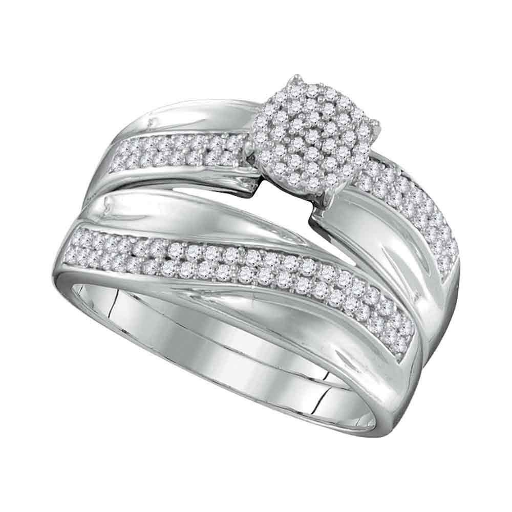 10kt White Gold His & Hers Round Diamond Cluster Matching Bridal Wedding Ring Band Set 1/2 Cttw