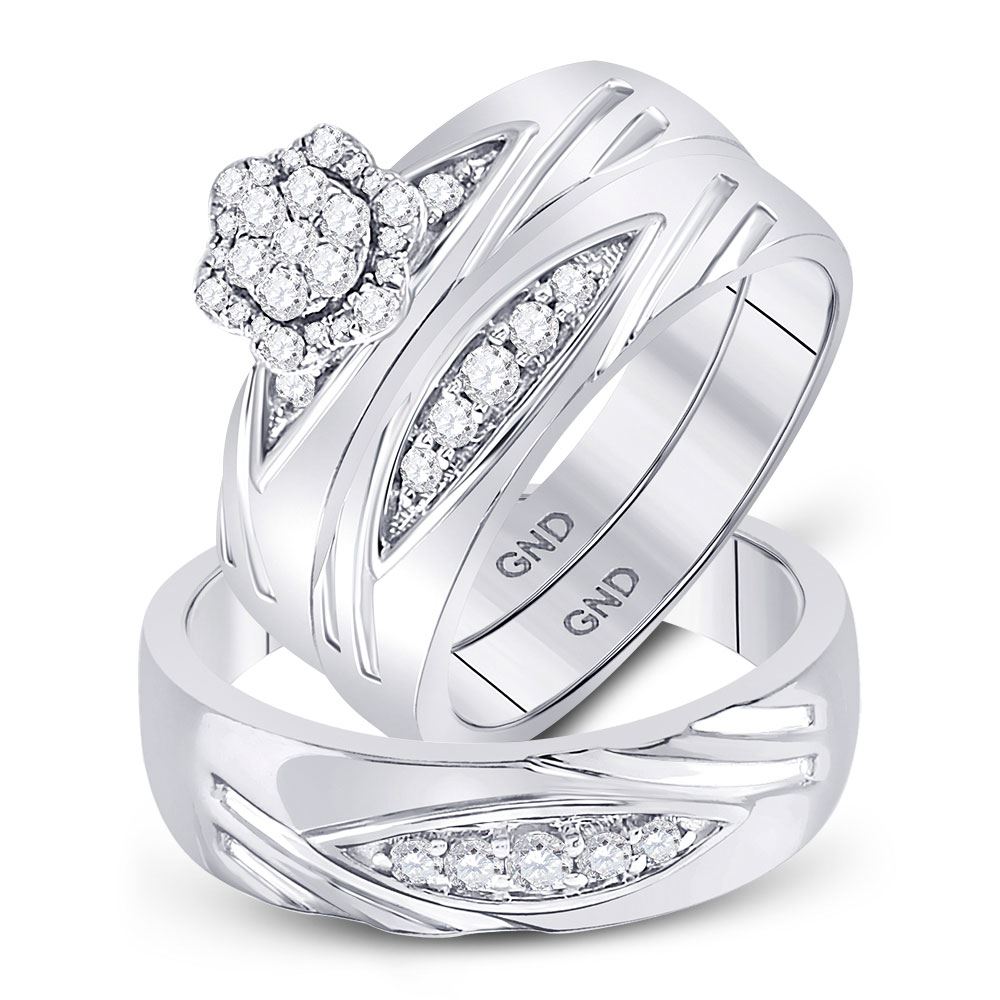 10kt White Gold His & Hers Round Diamond Cluster Matching Bridal Wedding Ring Band Set 1/2 Cttw