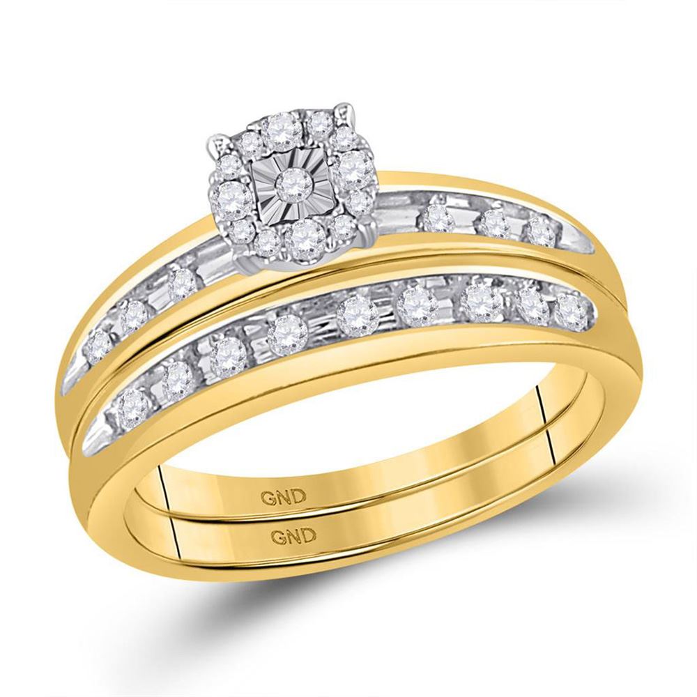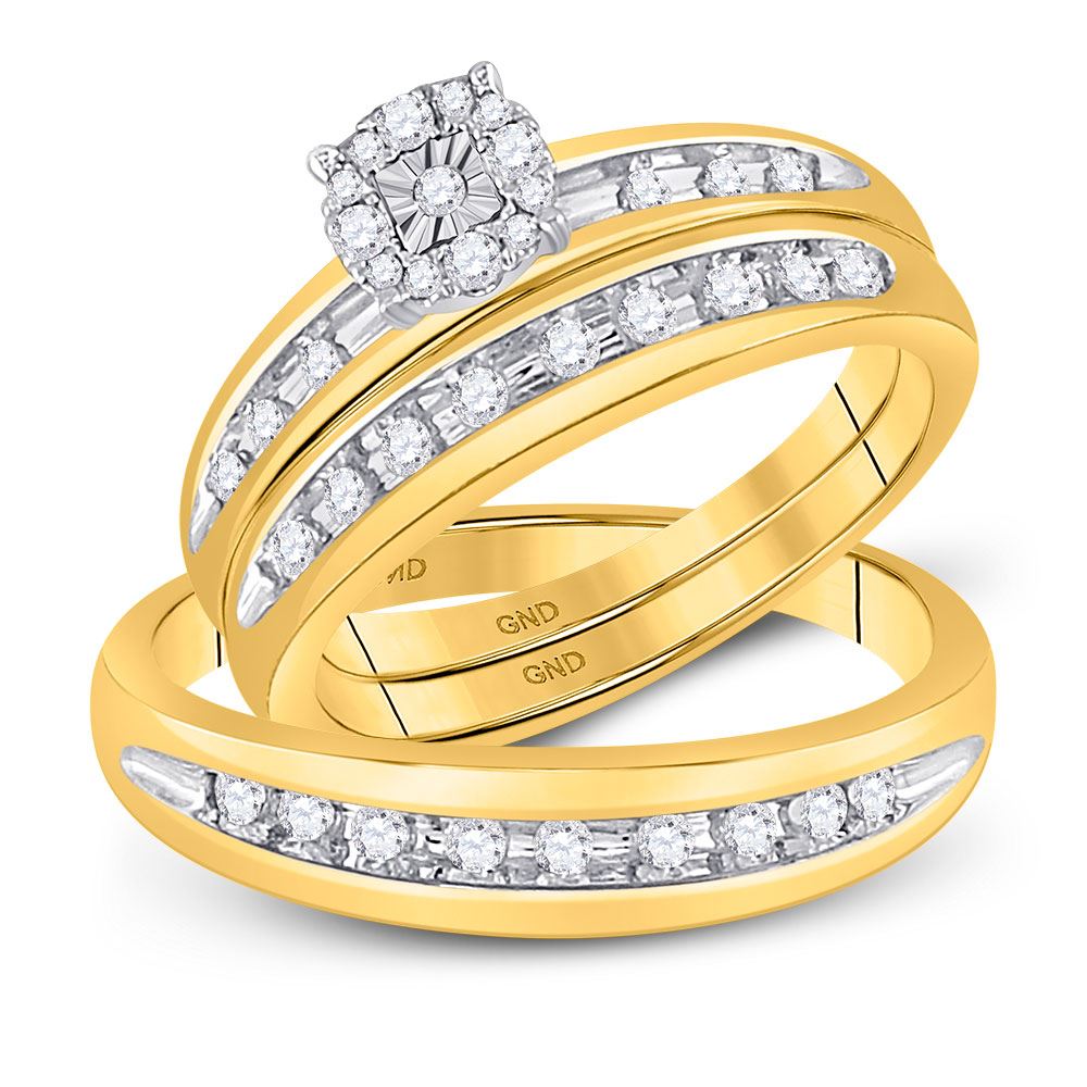 10k Yellow Gold Round Diamond Cluster Mens Womens Matching Halo Trio Wedding Bridal Ring Set 1/2 Cttw