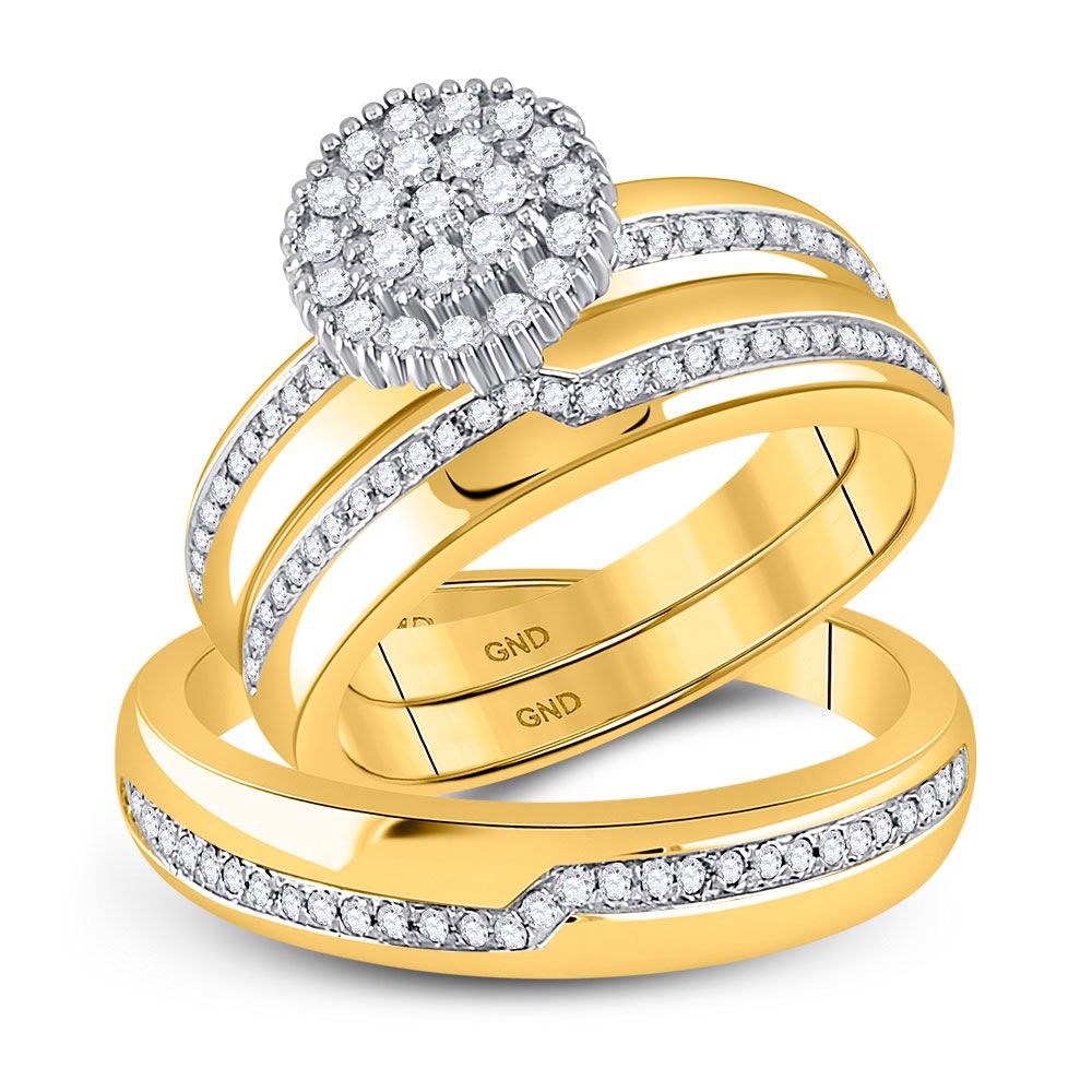 REF-51V8Y - 1/2 CTW His Hers Round Diamond Cluster Matching Wedding Set 10kt Yellow Gold - REF-51V8Y