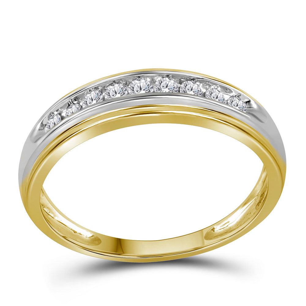 10kt Yellow Gold His & Hers Round Diamond Matching Wedding Band Set 1/2 Cttw