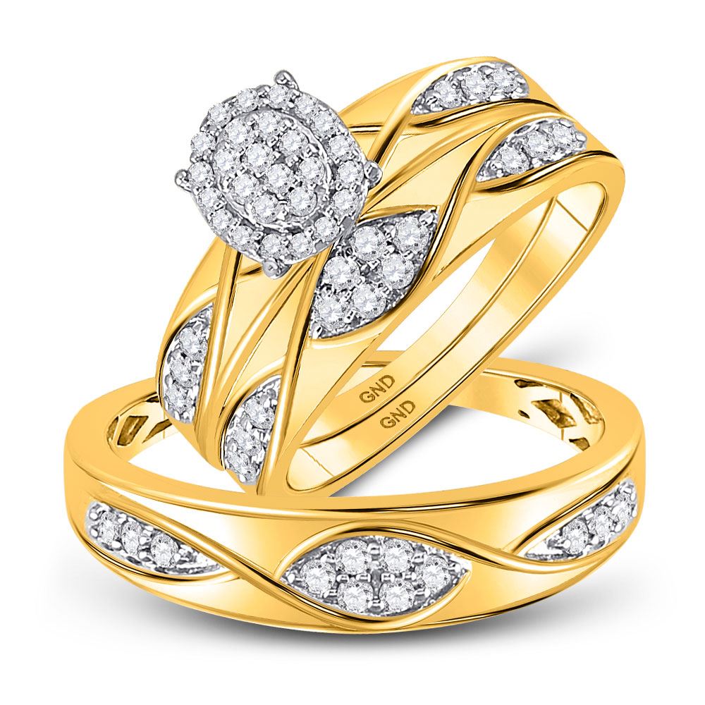 REF-54V5Y - 1/2 CTW His Hers Round Diamond Oval Matching Wedding Set 10kt Yellow Gold - REF-54V5Y