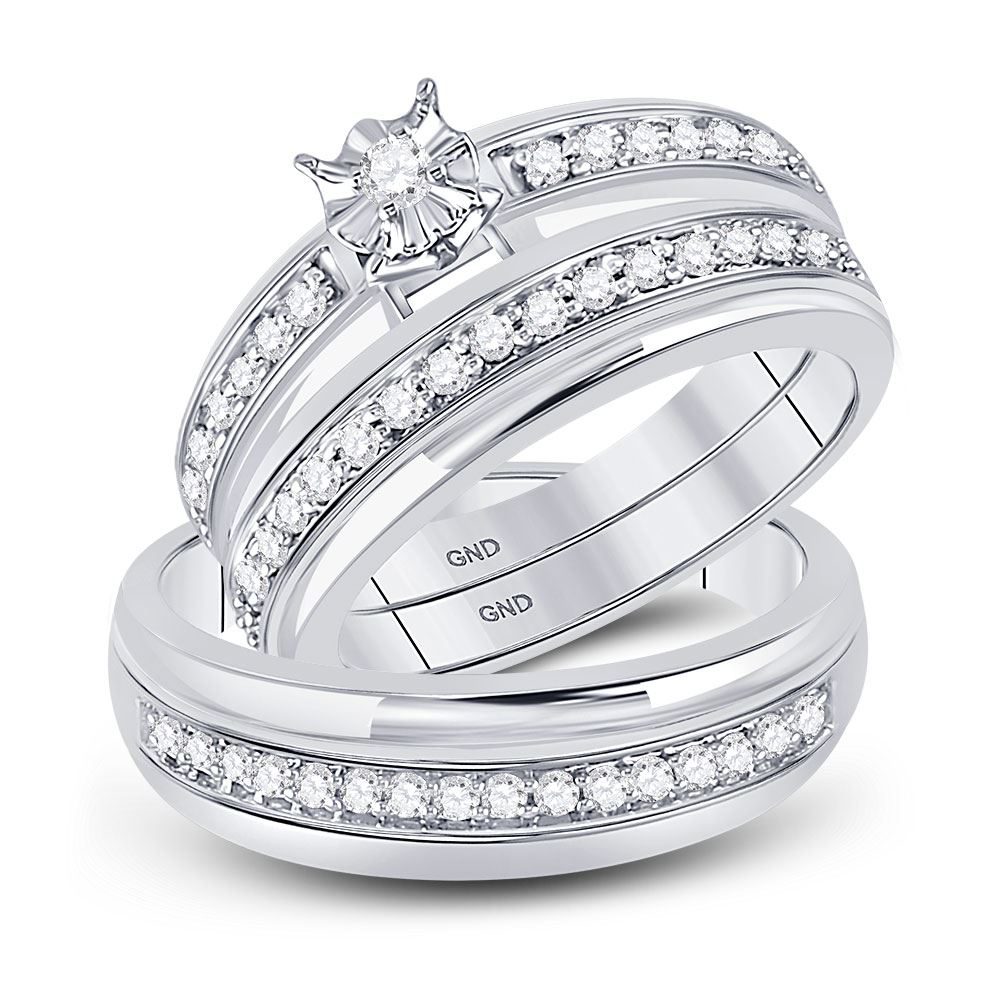 REF-40R9X - 1/2 CTW His Hers Round Diamond Solitaire Matching Wedding Set 10kt White Gold - REF-40R9X
