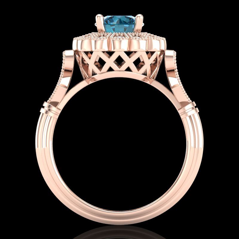 REF-218X2T -37832 ---- 1.2 CTW Intense Blue Diamond Solitaire Engagement Art Deco Ring 18K Rose Gold ---- Luxury Designer Brand Ring Appraised at $14,400 Certificate Number US37832  18k Rose gold,  Ring Size is 7, Ring measuring approx. Uniform, weighing in total approx. 6 grams. Made in the USA and is stamped 18k, Main stone 1 carat total weight containing 1 pieces of Intense Fancy Blue color with SI quality Round shape cut Diamond , Stone #2 0.2 carat total weight containing 14 pieces of H-I color with  VS/SI quality Round shape cut Diamond