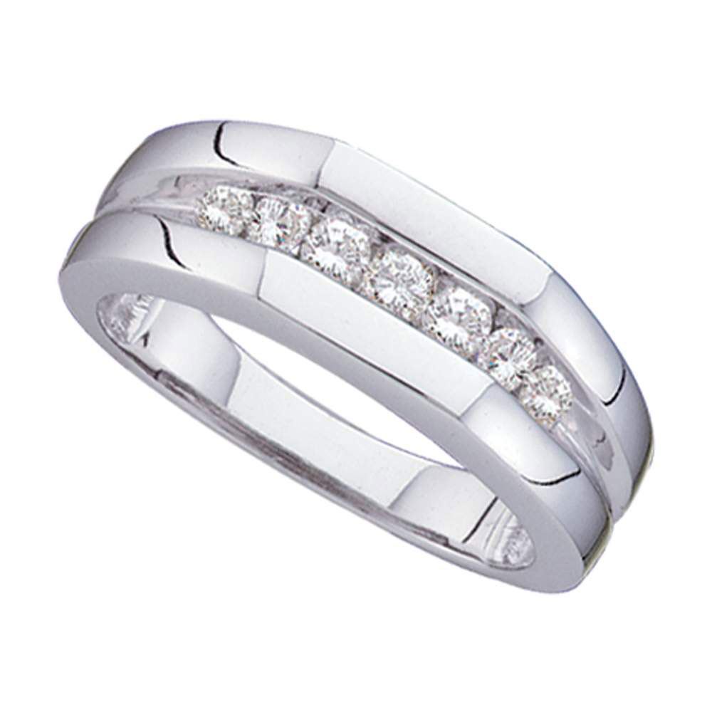 REF-60F3M ---- 1/2 CTW Mens Round Channel-set Diamond Flat Surface Wedding Ring 14kt White Gold