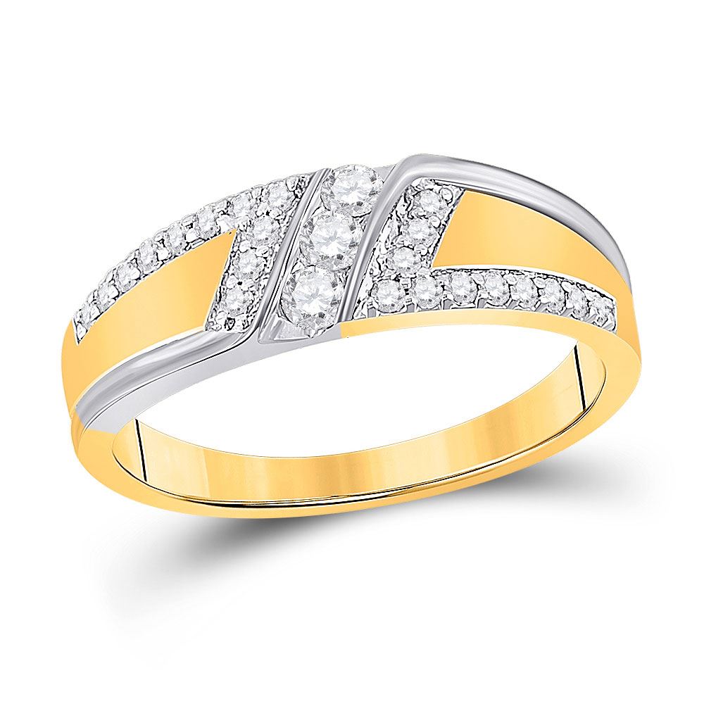 REF-52A5M - 1/2 CTW Mens Round Diamond 3-stone Wedding Ring 10kt Two-tone Gold - REF-52A5M