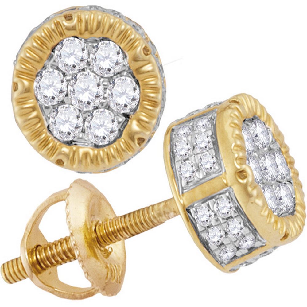 10kt Yellow Gold Mens Round Diamond 3D Circle Cluster Stud Earrings 1/2 Cttw