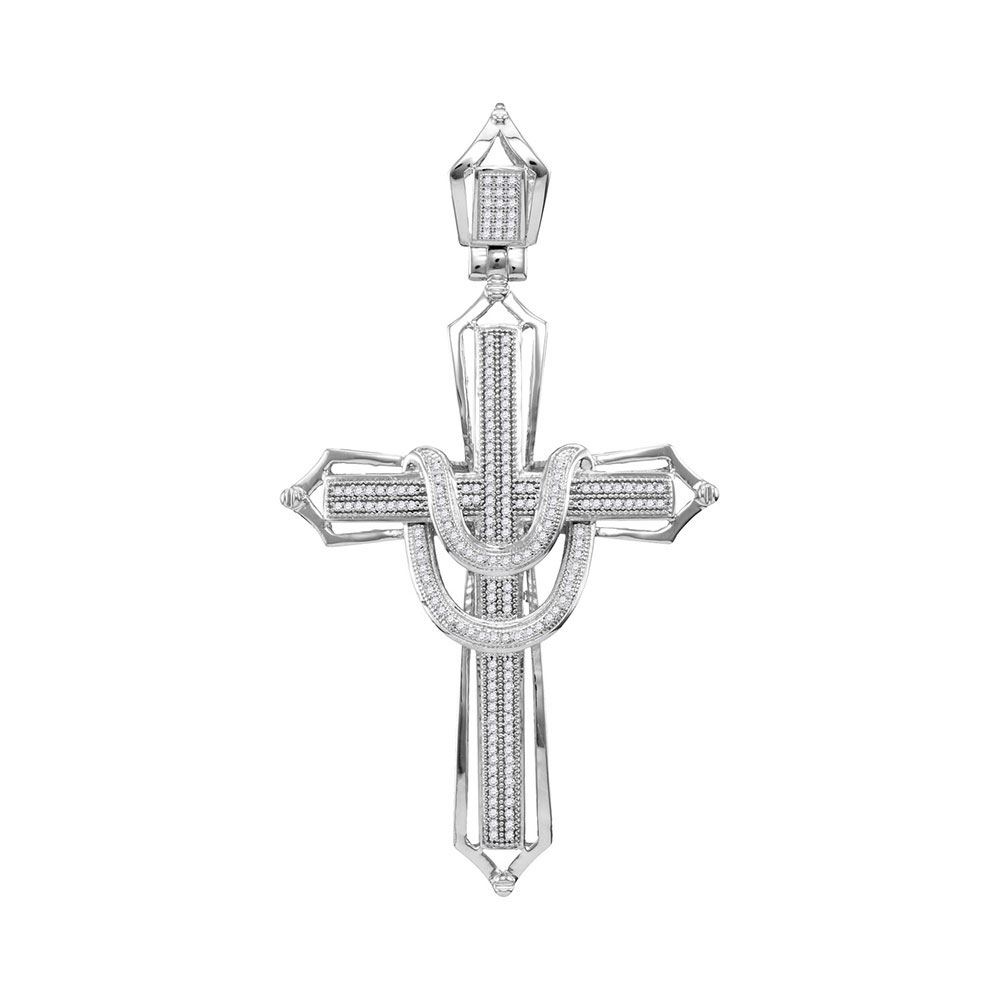 REF-57T5K ---- 1/2 CTW Mens Round Diamond Adorned Cross Charm Pendant 10kt White Gold