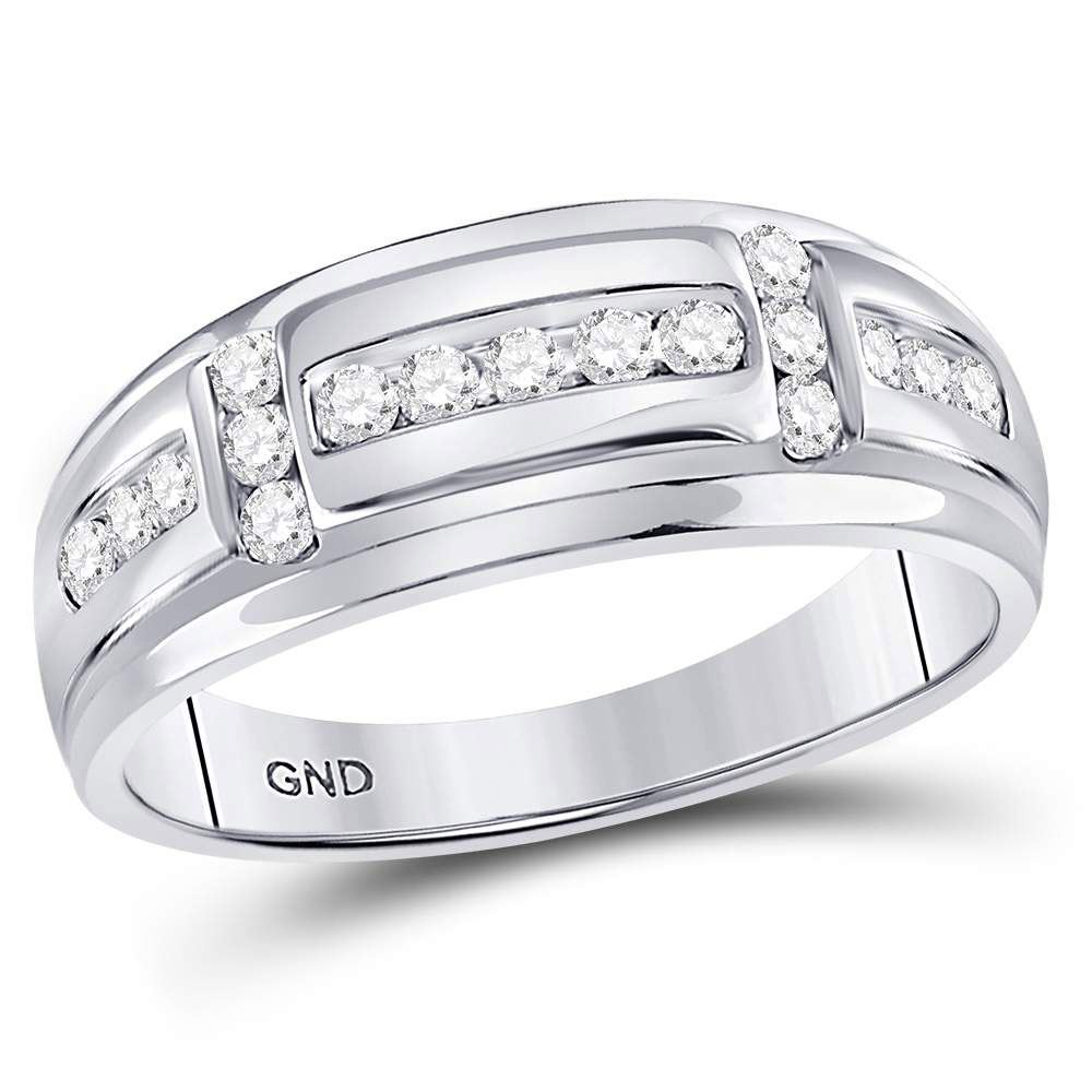 10kt White Gold Mens Round Diamond Channel-set Wedding Band Ring 1/2 Cttw