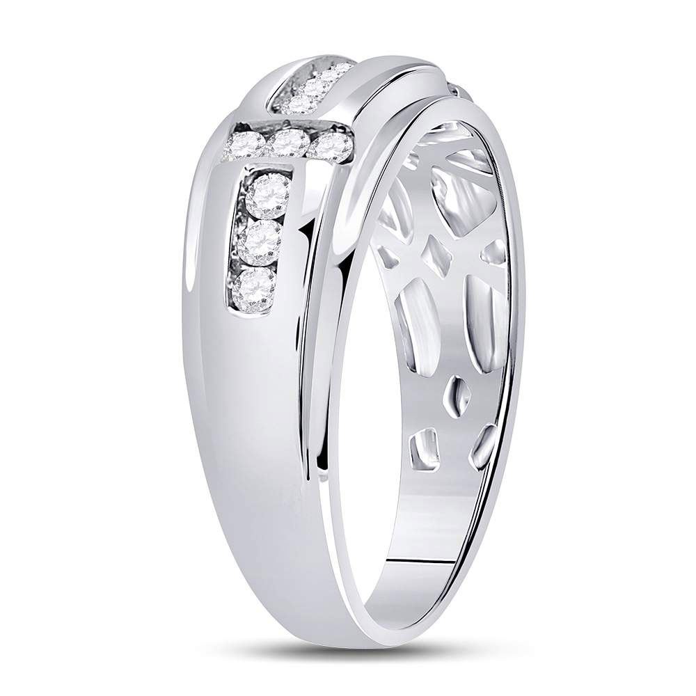 REF-47X9T ---- 1/2 CTW Mens Round Diamond Channel-set Wedding Ring 10kt White Gold