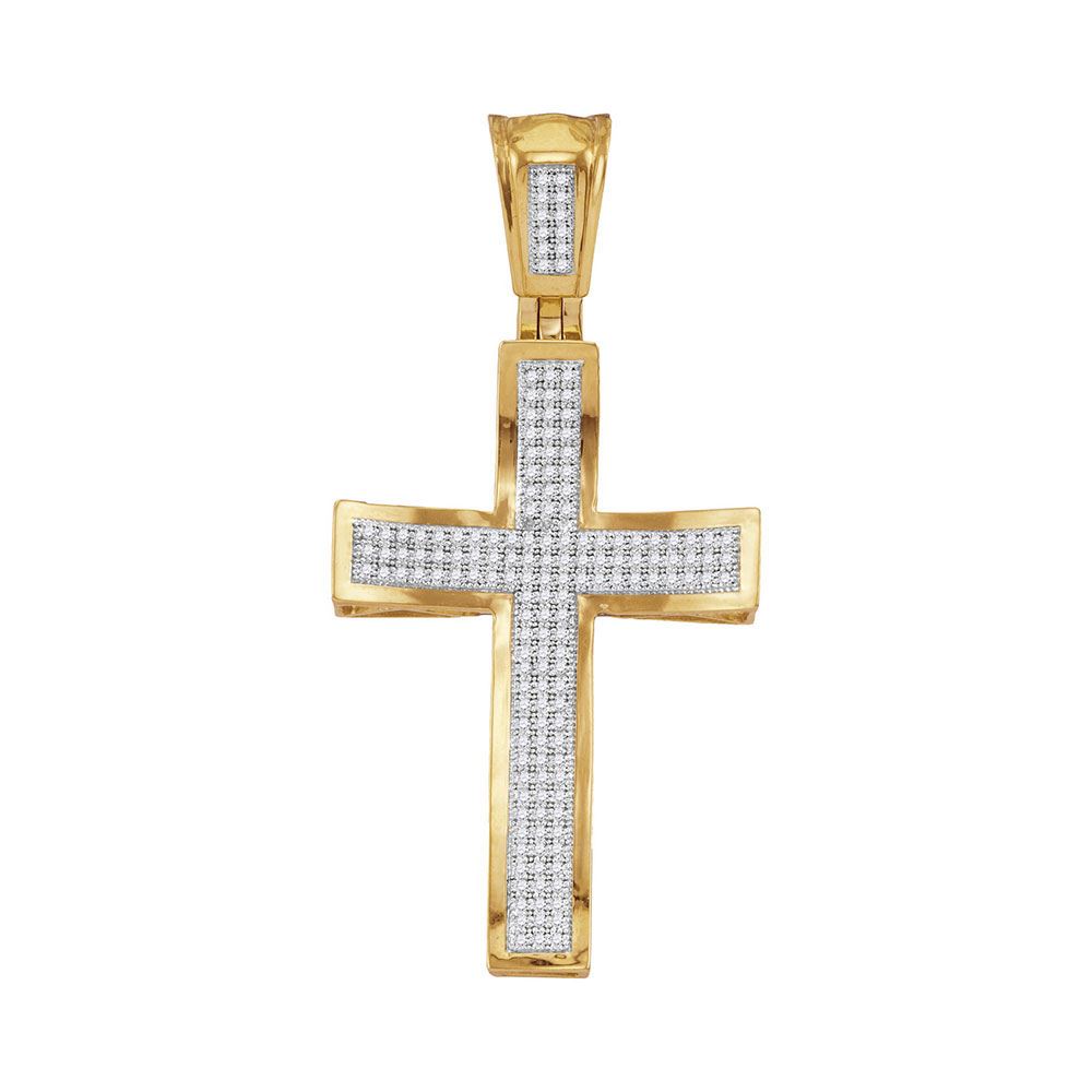 10kt Yellow Gold Mens Round Diamond Concave Cross Charm Pendant 1/2 Cttw