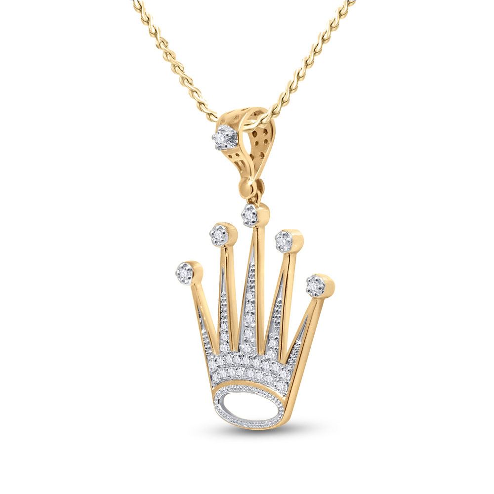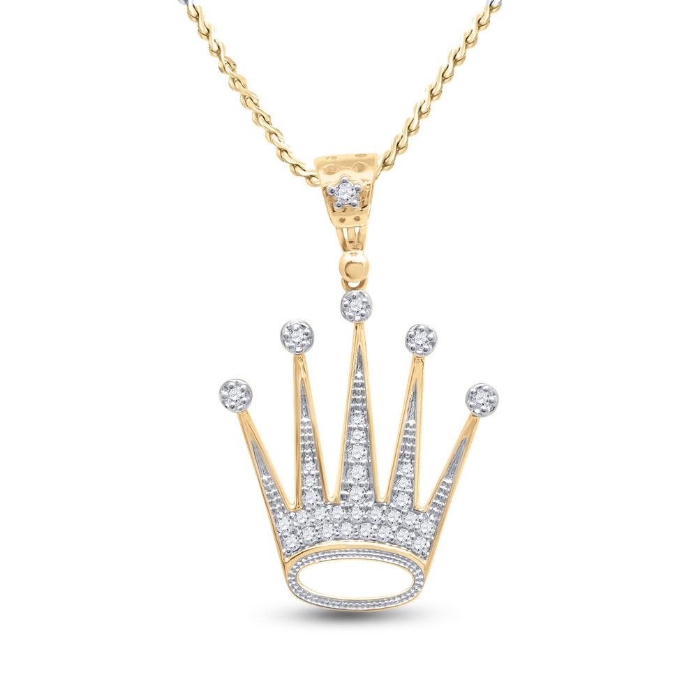 REF-41X9T ---- 1/2 CTW Mens Round Diamond Crown King Charm Pendant 10kt Yellow Gold