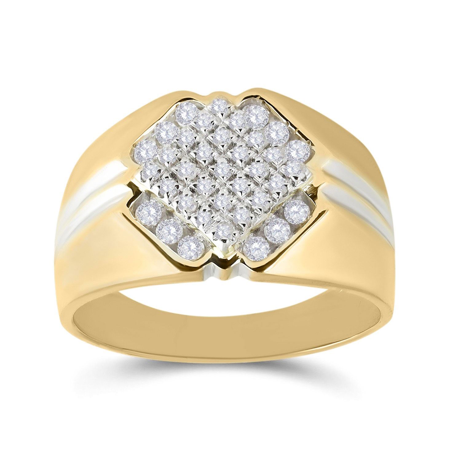 10kt Two-tone Gold Mens Round Diamond Diagonal Square Cluster Ring 1/2 Cttw