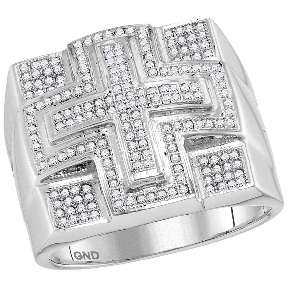 REF-57Y5X ---- 1/2 CTW Mens Round Diamond Domed Cross Cluster Ring 10kt White Gold