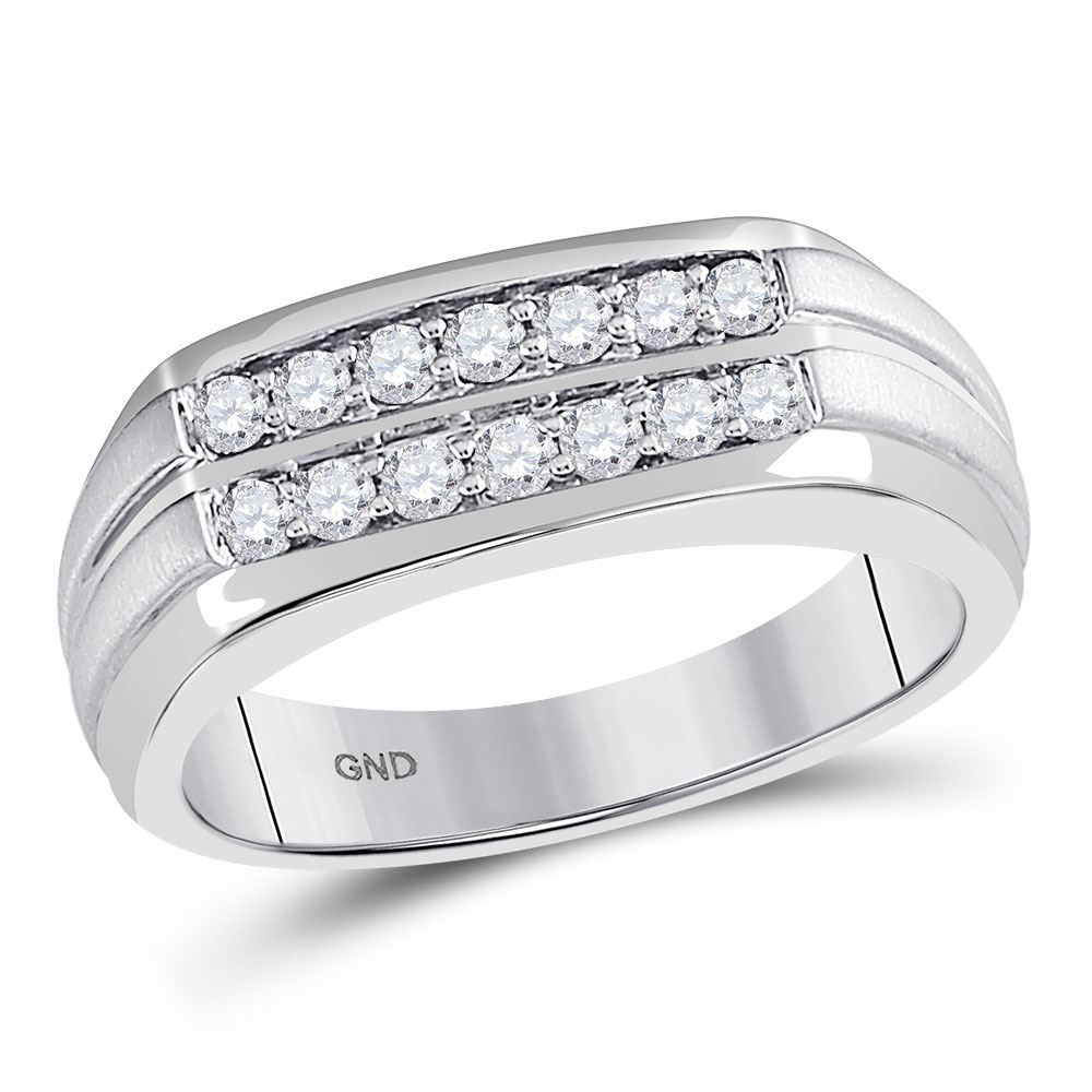 14kt White Gold Mens Round Diamond Double Row Wedding Band Ring 1/2 Cttw