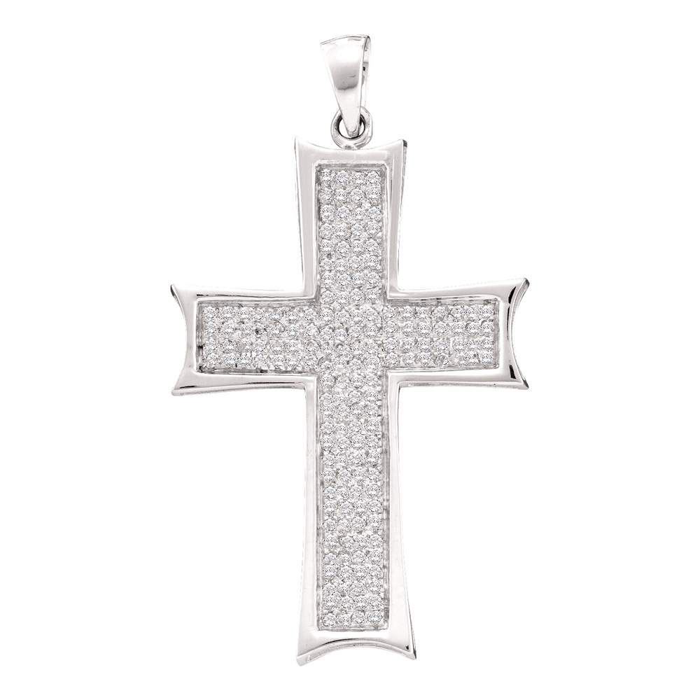 REF-27M5A ---- 1/2 CTW Mens Round Diamond Flared Roman Cross Charm Pendant 10kt White Gold