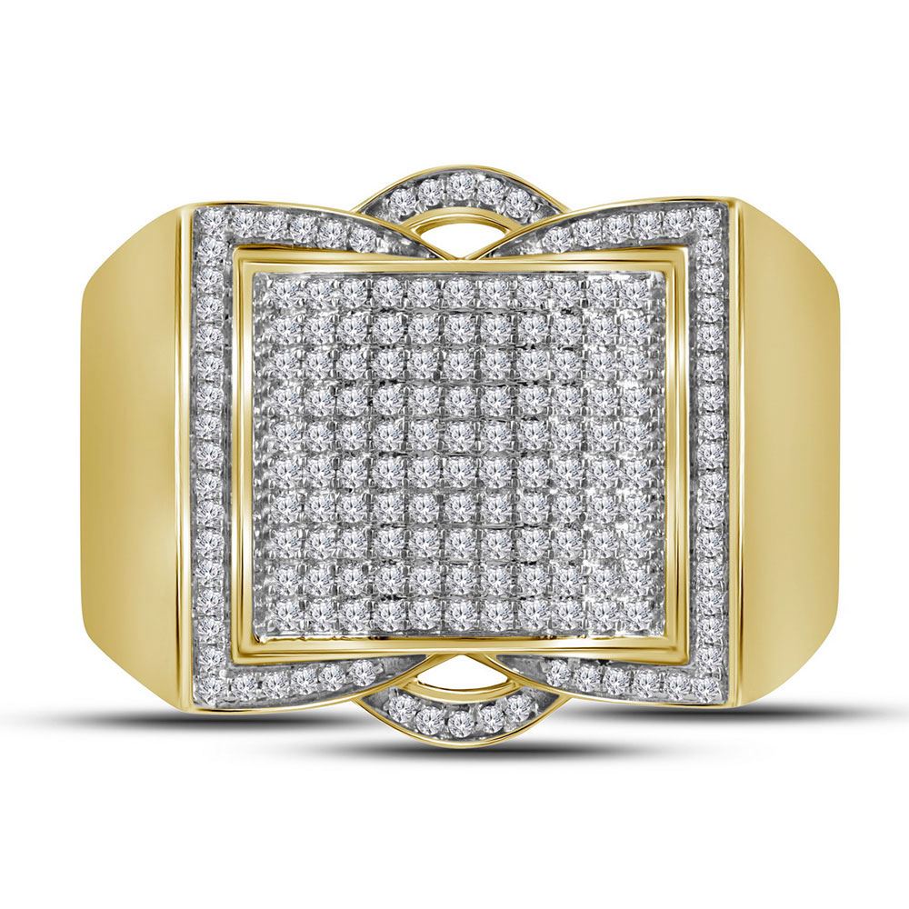 10kt Yellow Gold Mens Round Diamond Framed Square Cluster Ring 1/2 Cttw