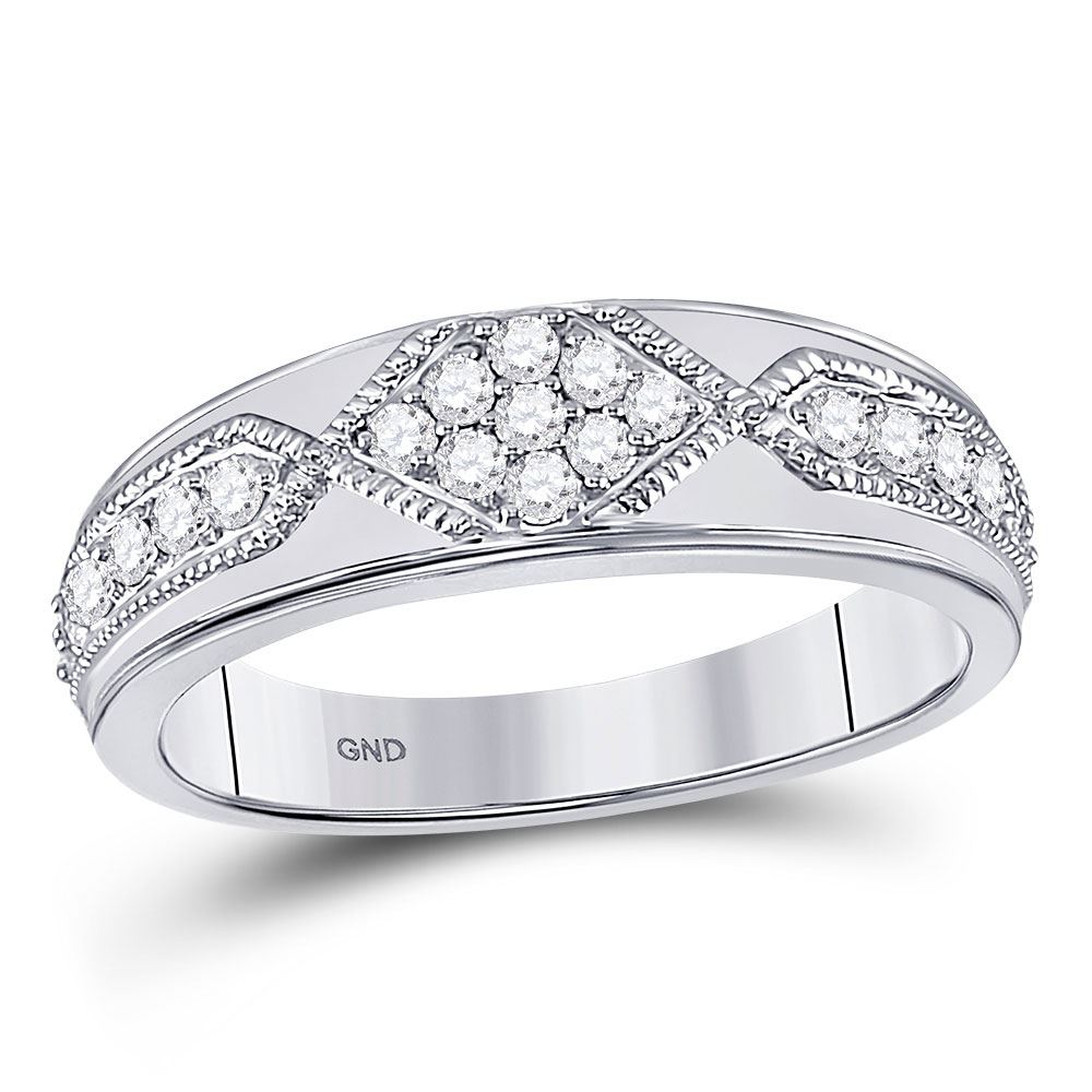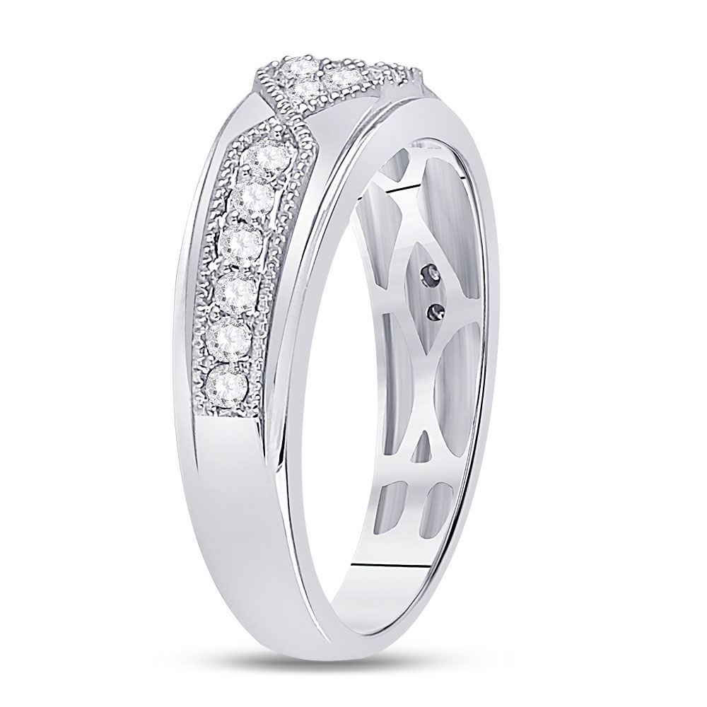 14kt White Gold Mens Round Diamond Milgrain Wedding Band Ring 1/2 Cttw