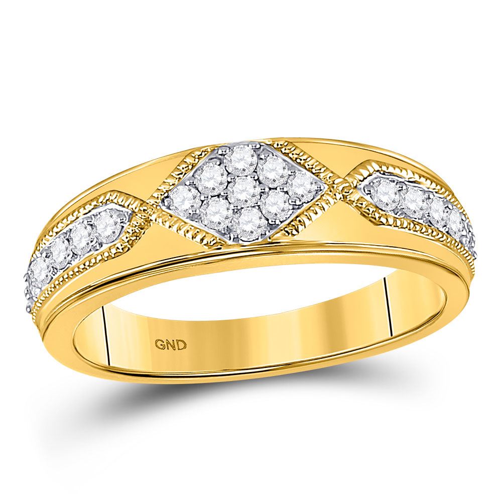 14kt Yellow Gold Mens Round Diamond Milgrain Wedding Band Ring 1/2 Cttw