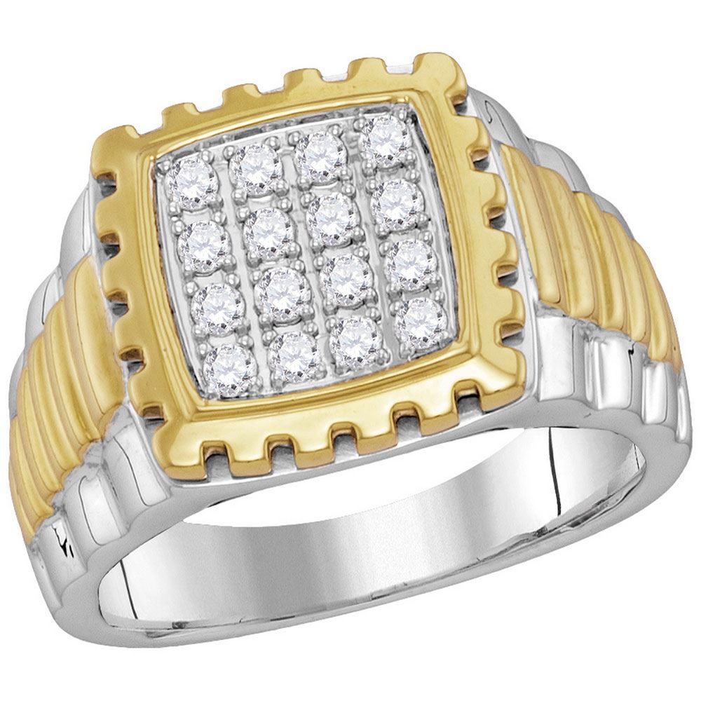 10kt Two-tone Gold Mens Round Diamond Notched Frame Square Cluster Ring 1/2 Cttw