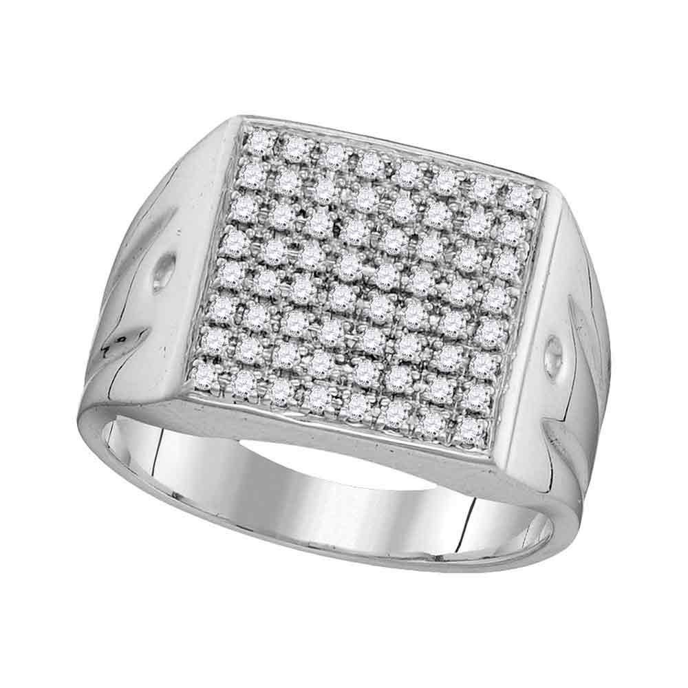 10kt White Gold Mens Round Diamond Polished Square Cluster Ring 1/2 Cttw