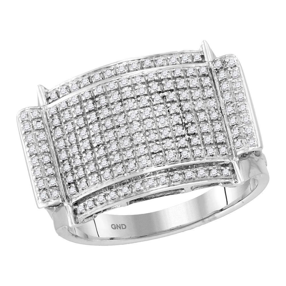10kt White Gold Mens Round Diamond Rectangle Cluster Ring 1/2 Cttw