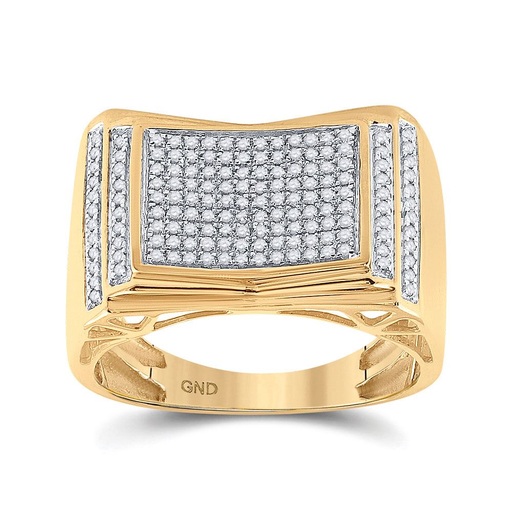 REF-66M8F - 1/2 CTW Mens Round Diamond Rectangle Cluster Ring 10kt Yellow Gold - REF-66M8F