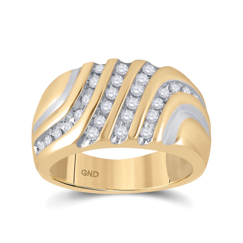 REF-39W6F ---- 1/2 CTW Mens Round Diamond Ring 10kt Yellow Gold
