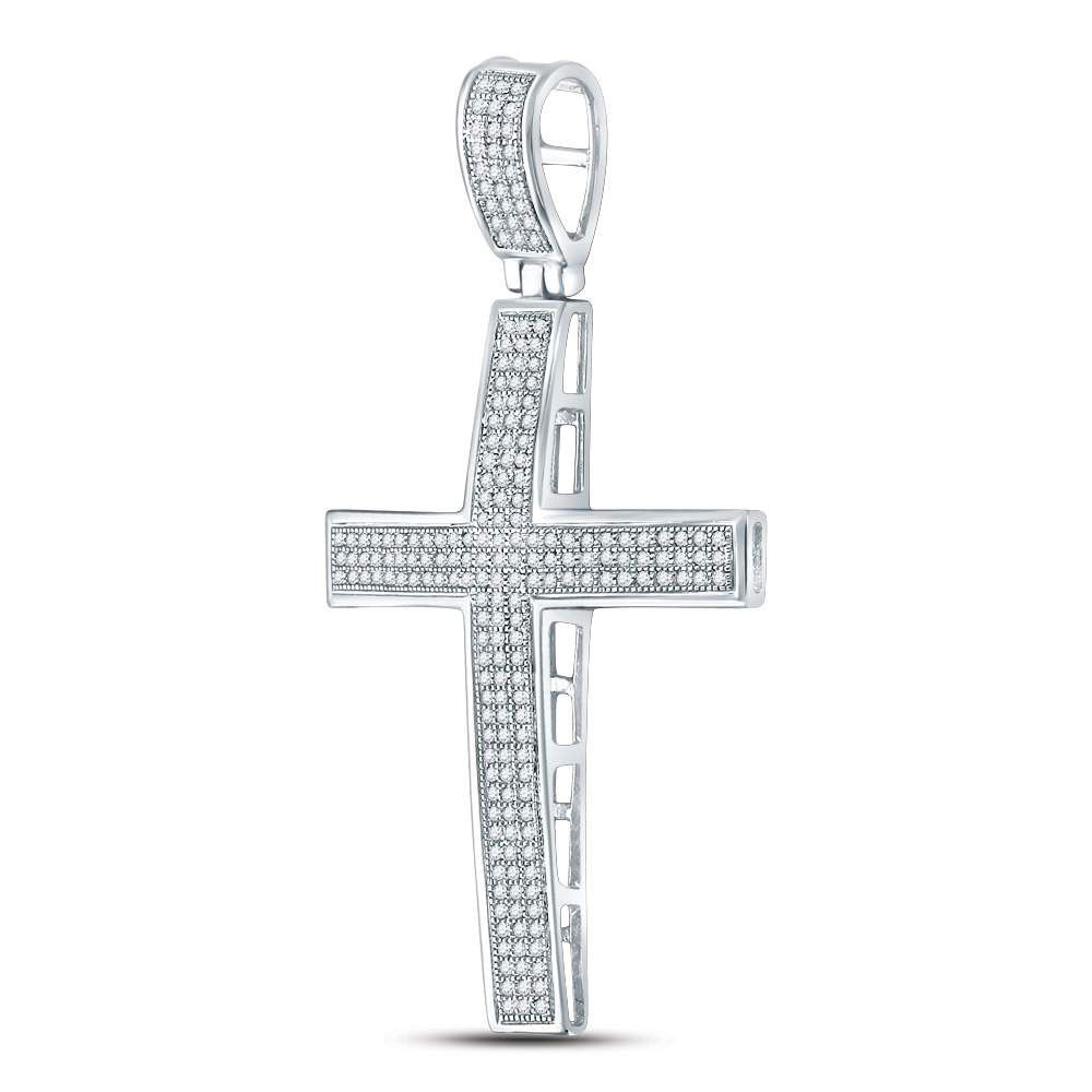 REF-39N3Y ---- 1/2 CTW Mens Round Diamond Roman Cross Charm Pendant 10kt White Gold