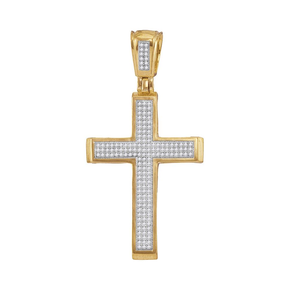 10kt Yellow Gold Mens Round Diamond Roman Cross Charm Pendant 1/2 Cttw