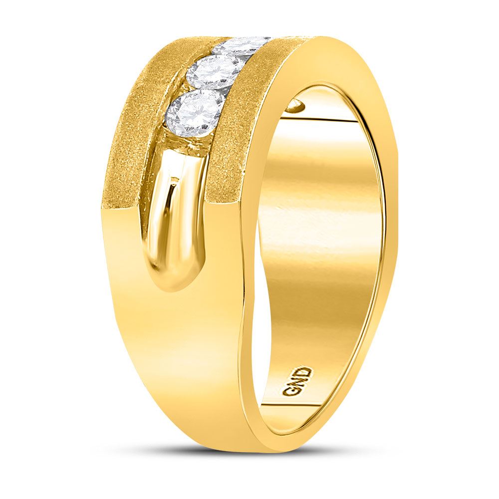 REF-63R5H ---- 1/2 CTW Mens Round Diamond Single Row 5-Stone Wedding Ring 10kt Yellow Gold