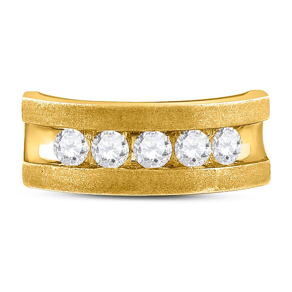 REF-63R5H ---- 1/2 CTW Mens Round Diamond Single Row 5-Stone Wedding Ring 10kt Yellow Gold