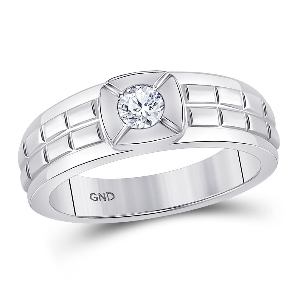 REF-135R5H ---- 1/2 CTW Mens Round Diamond Solitaire Grid Fashion Ring 14kt White Gold