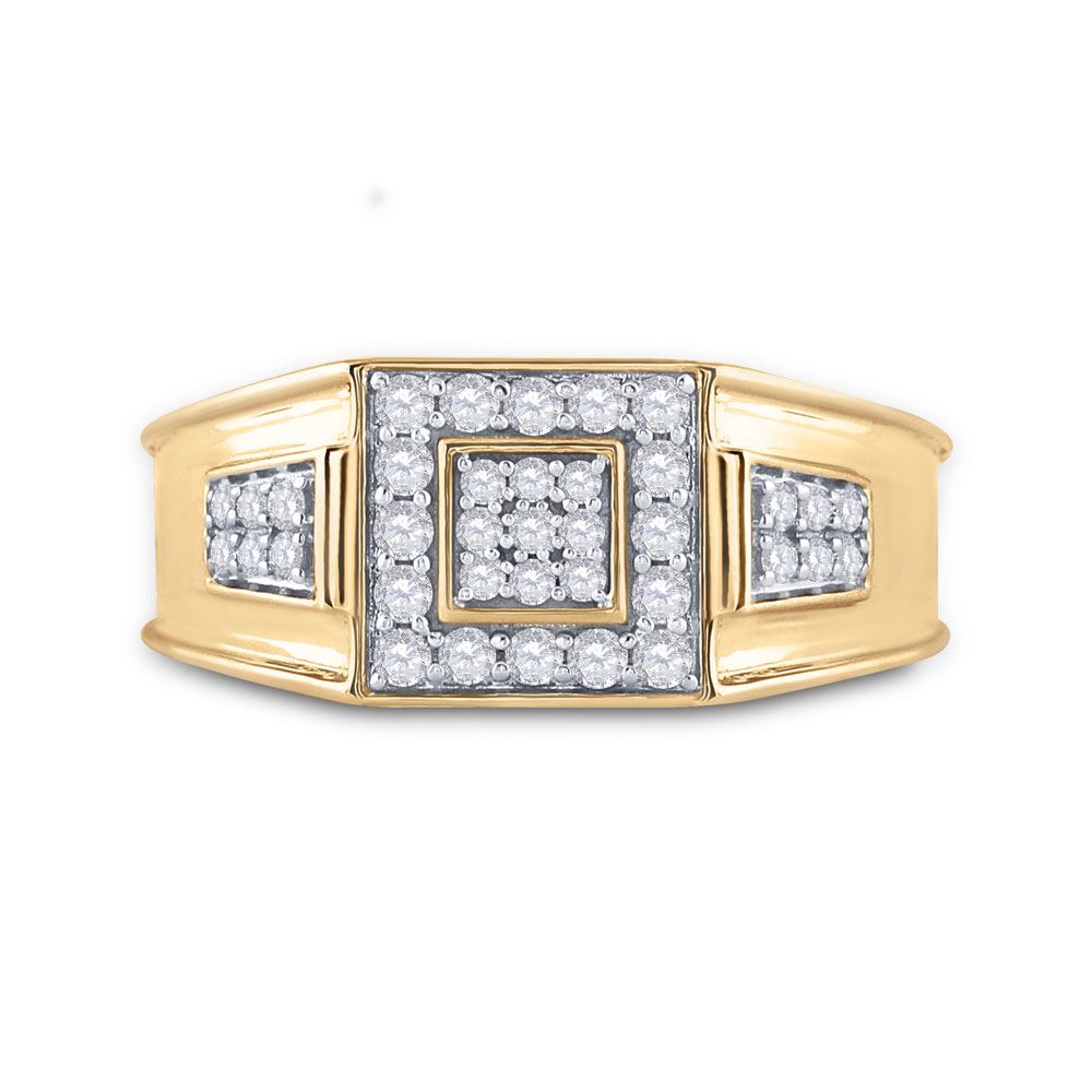 14k Yellow Gold Mens Round Diamond Square Cluster Band Ring 1/2 Cttw