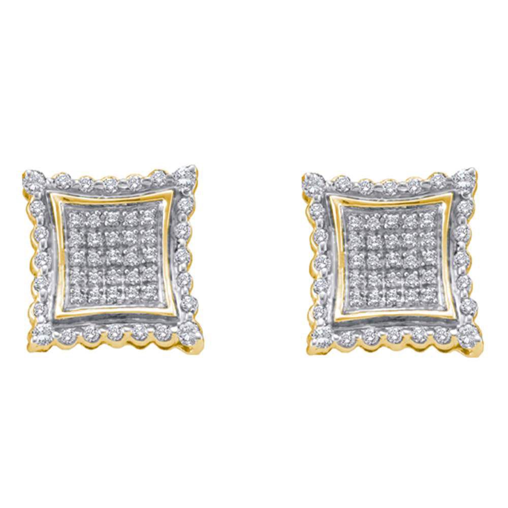 REF-35W4H - 1/2 CTW Mens Round Diamond Square Earrings 10kt Yellow Gold - REF-35W4H