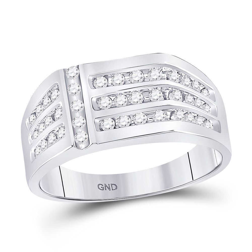 14kt White Gold Mens Round Diamond Triple Row Fashion Ring 1/2 Cttw