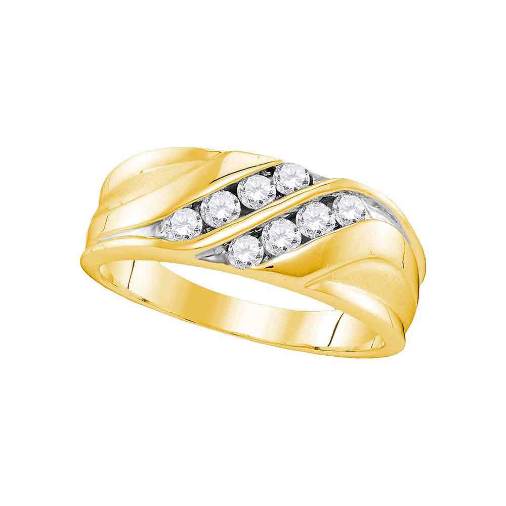 REF-53R2X - 1/2 CTW Mens Round Diamond Wedding Band Ring 10kt Yellow Gold - REF-53R2X