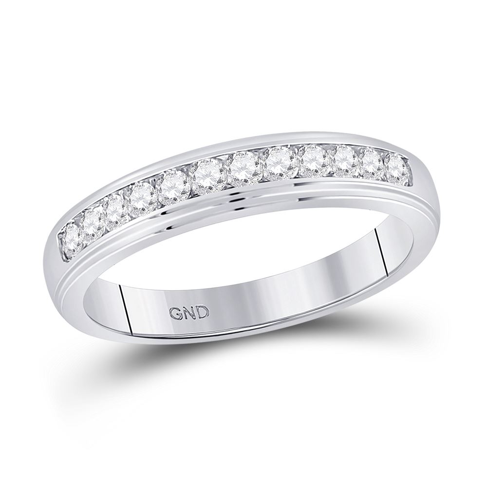 REF-43H6R - 1/2 CTW Mens Round Diamond Wedding Channel-Set Band Ring 10kt White Gold - REF-43H6R