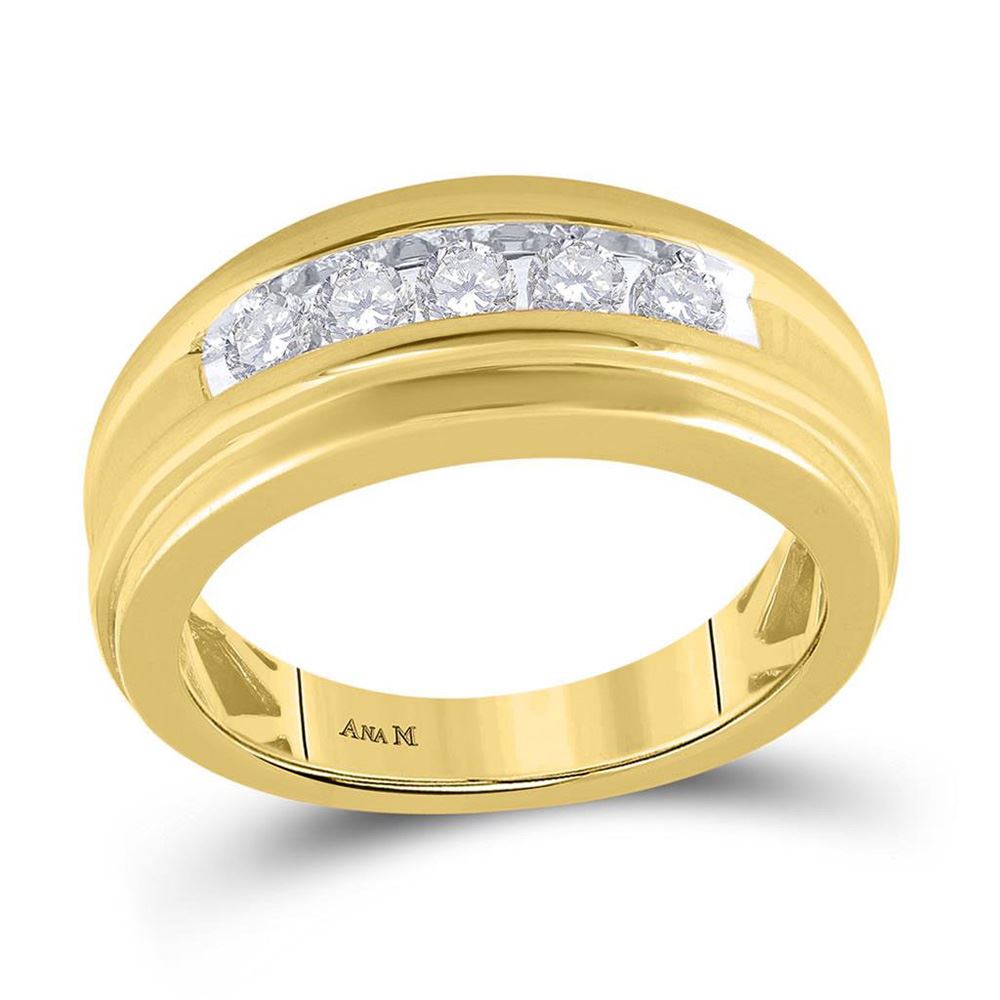 REF-81M3A ---- 1/2 CTW Mens Round Diamond Wedding Channel Set Ring 14kt Yellow Gold