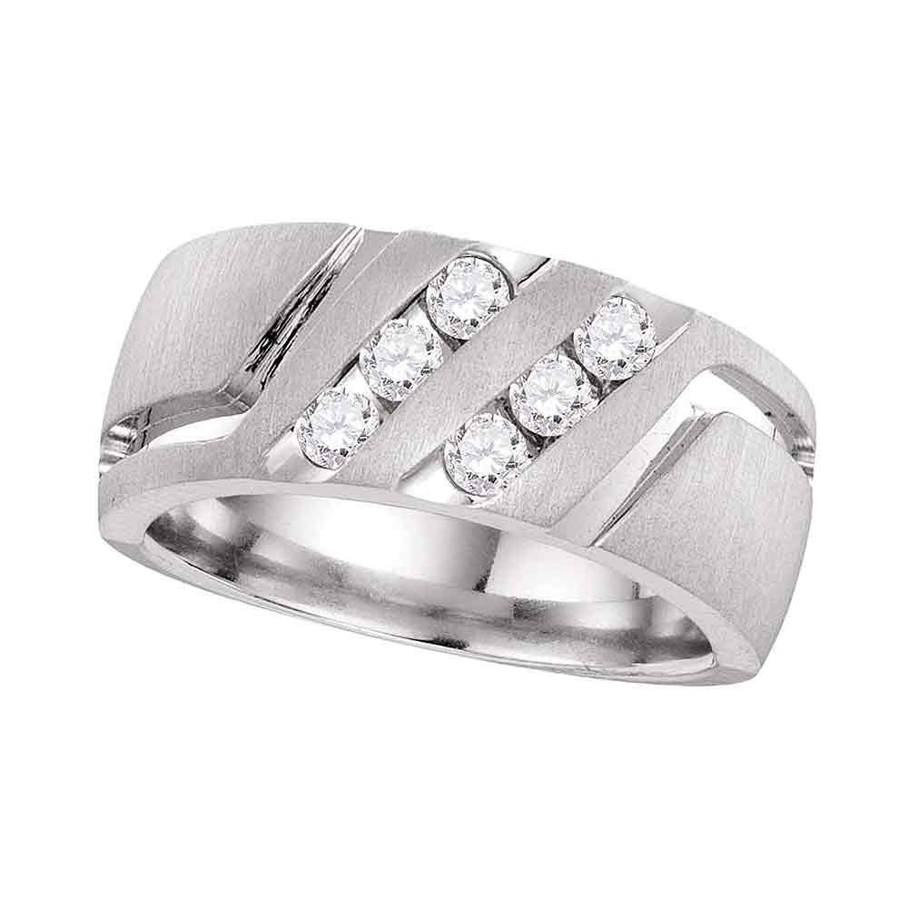 REF-133W2H - 1/2 CTW Mens Round Diamond Wedding Double Row Band Ring 14kt White Gold - REF-133W2H
