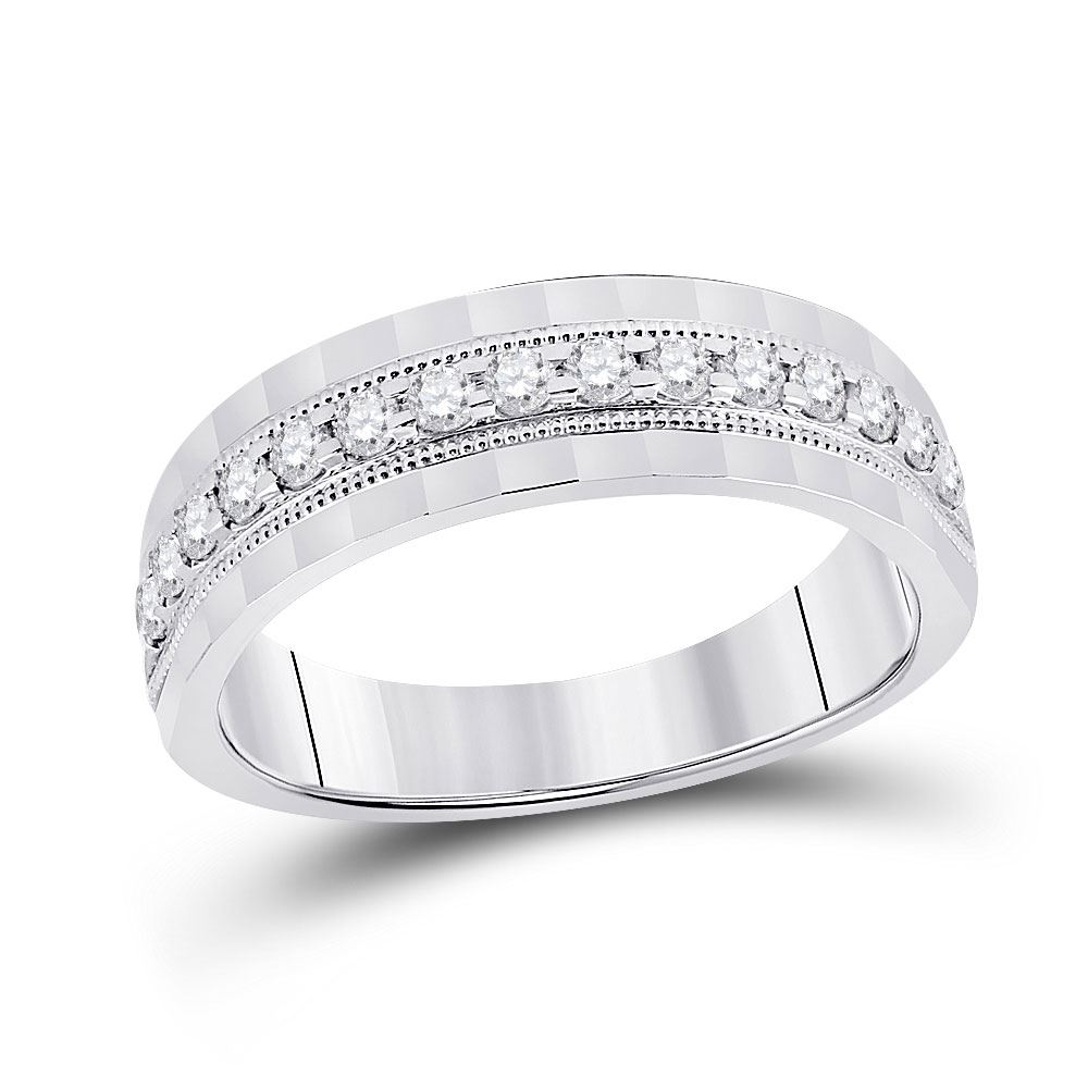 REF-68M2F - 1/2 CTW Mens Round Diamond Wedding Single Row Band Ring 10kt White Gold - REF-68M2F